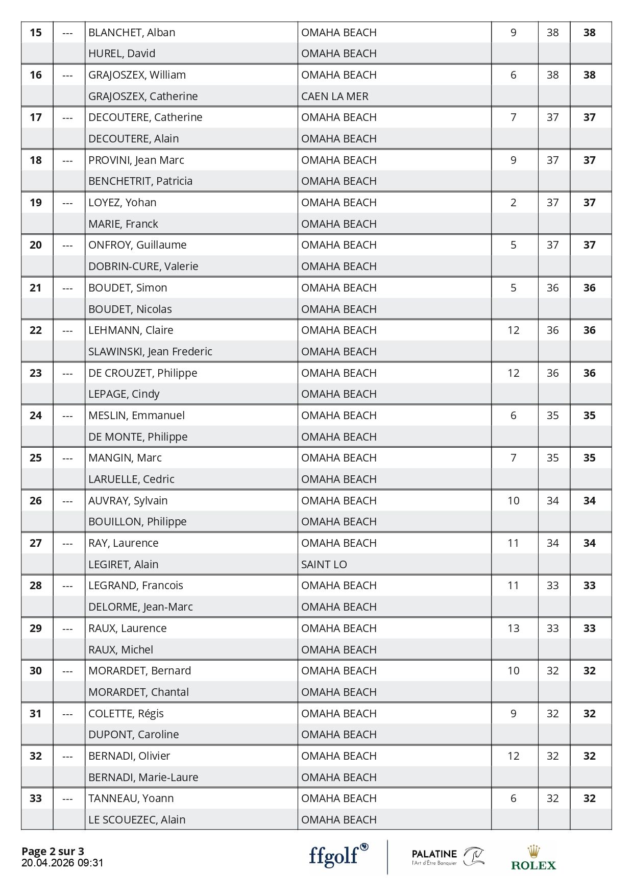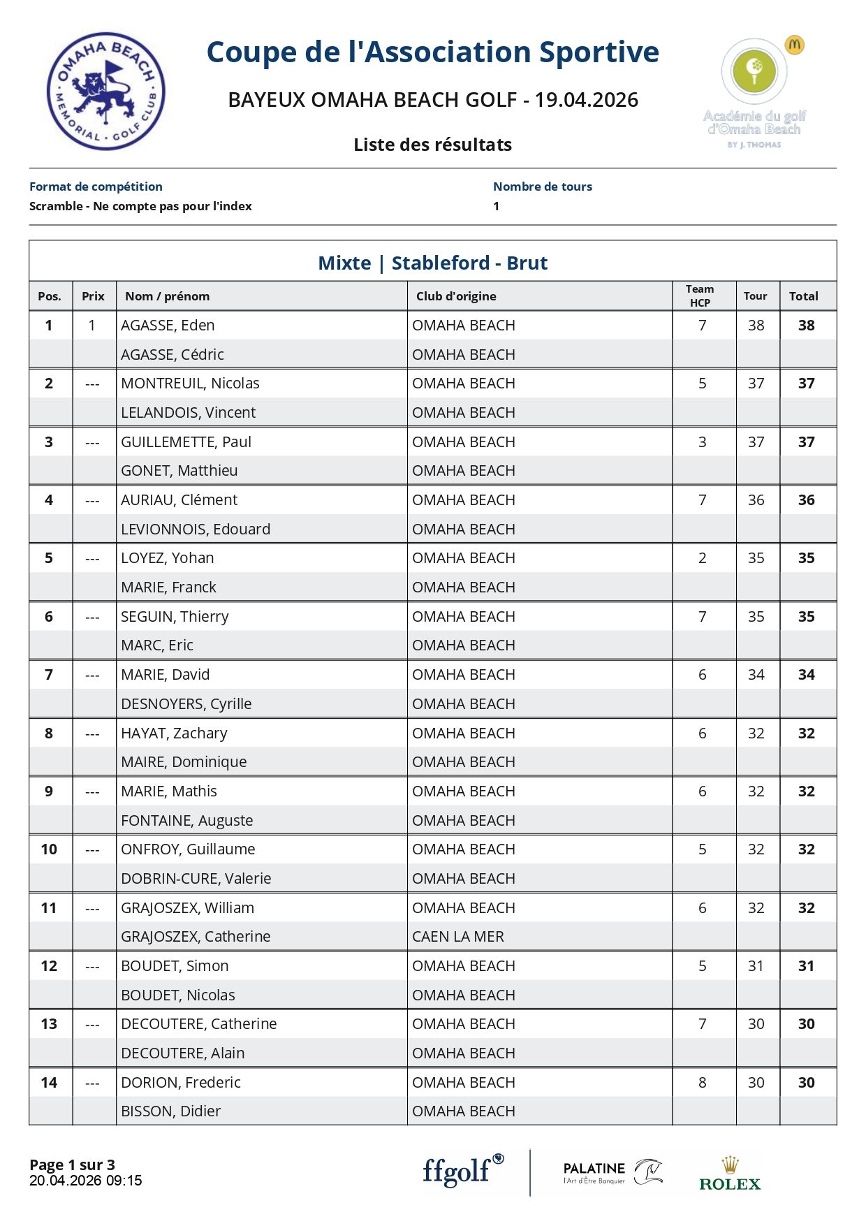 Félicitations à la Famille Agasse, Eden et Cédric, vainqueurs de cette édition, avec un score de 38 points en BRUT et 45 points en NET.