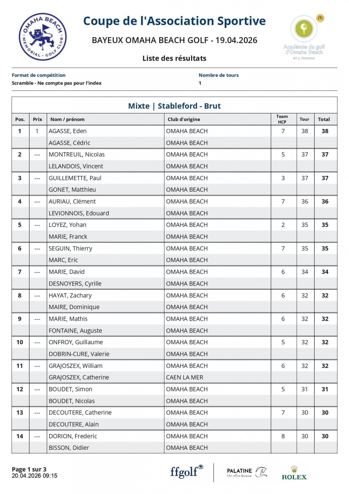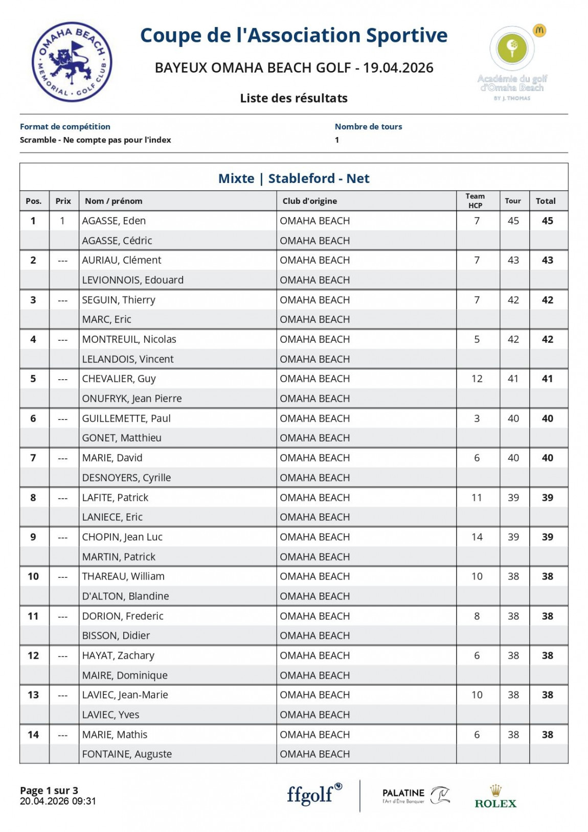 Voici les résultats de la coupe de l'Association SportiveLa Coupe de l’Association Sportive 2026 a une nouvelle fois rassemblé de nombreux participants autour d’une journée ensoleillé. Cet événement incontournable du calendrier a offert aux joueurs l’occasion de se challenger dans une ambiance chaleureuse.