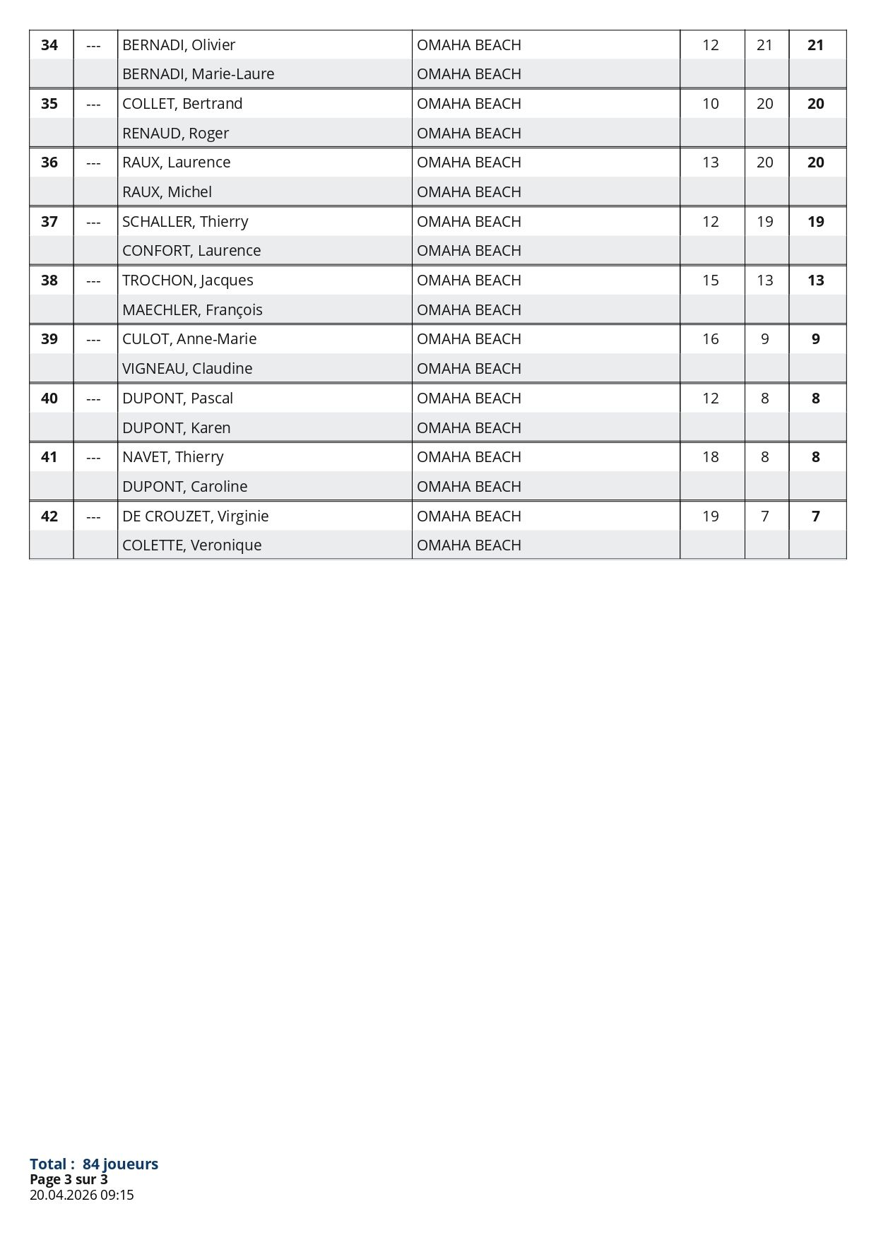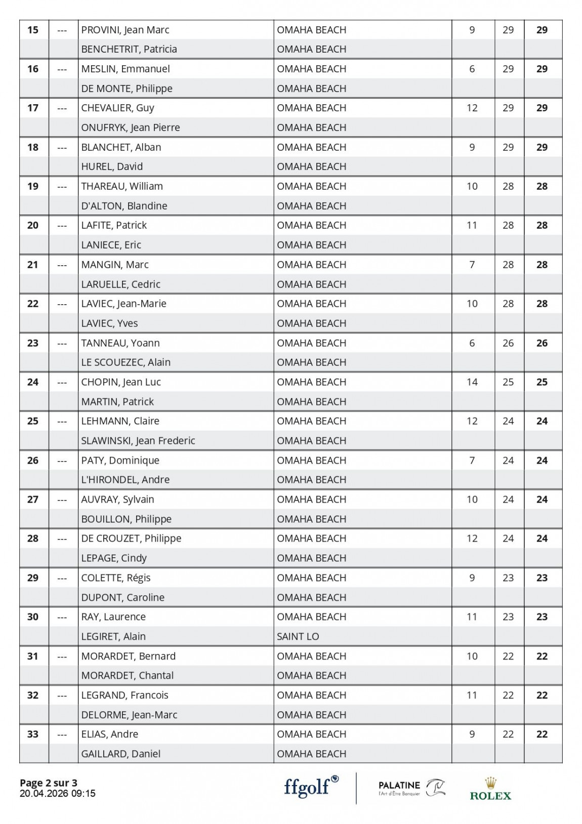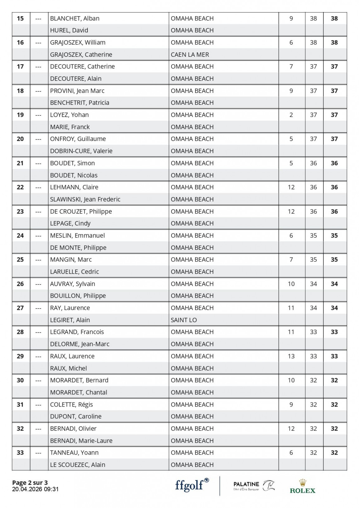 Félicitations à la Famille Agasse, Eden et Cédric, vainqueurs de cette édition, avec un score de 38 points en BRUT et 45 points en NET.